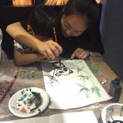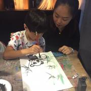 木木是中德混血儿,一直是生活在国外,很少有机会接触国粹的东西,他妈妈趁着假期的空闲带木木回国学习画画,孩子很聪明,上手快,但就是没有一点基础,从刚开始的一笔都走形到后来的游刃有余,两周四节课,看到了孩子的变化。还有一个问题就是坐不住,好动,可是学习画画就是一个静的过程。